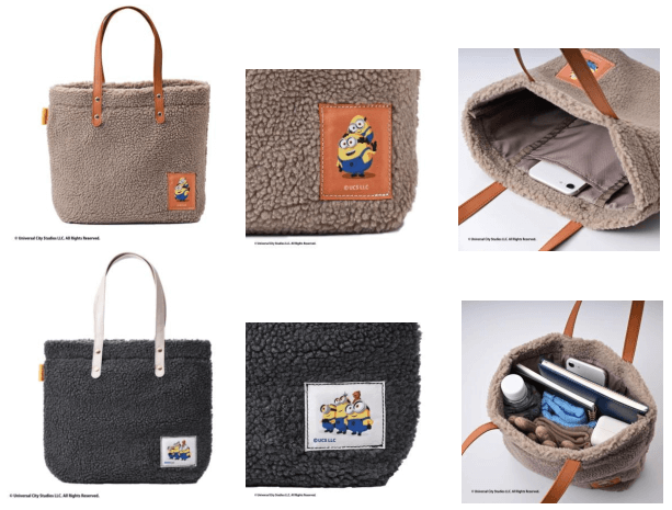 - ボアバッグ(ふわふわ素材+ミニオンのワッペン付き/色はグレー&ブラウン)